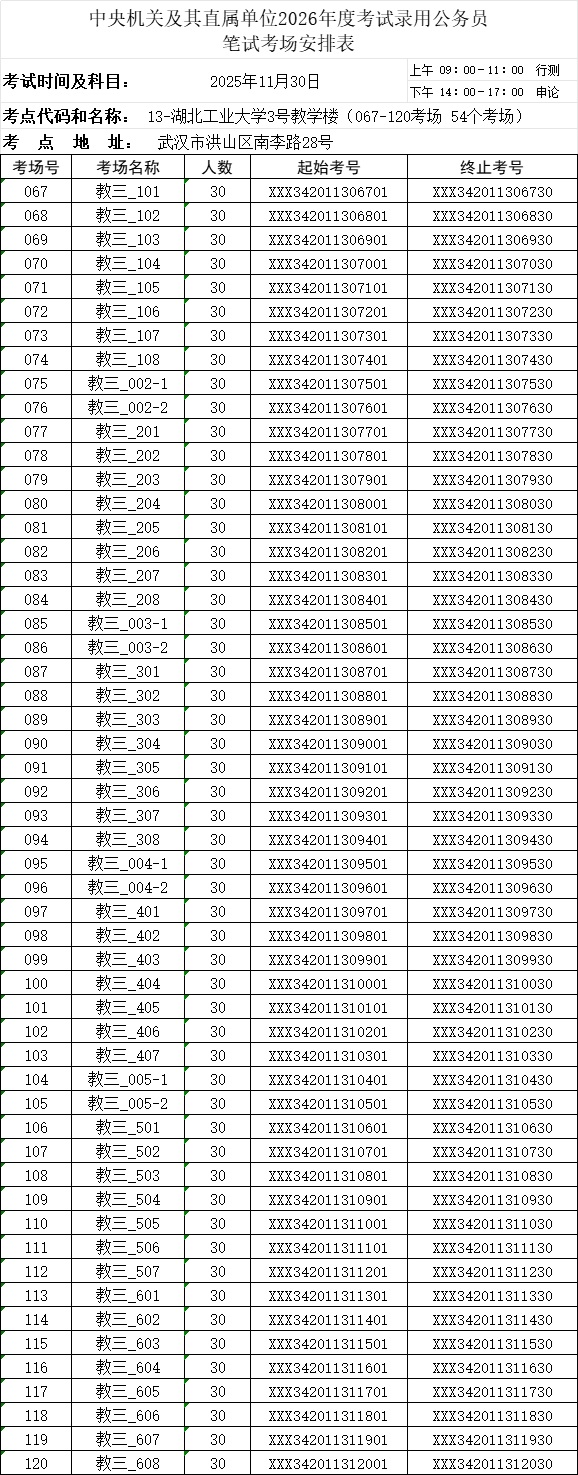 行政职业能力测验 | 08:20 | 09:00-11:00 | 二号和三号教学楼 |