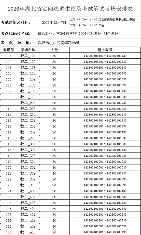 根据上级相关部门安排部署,2026年湖北省定向选调生招录考试笔试将于2025年12月7日(全天)在篮球比分网_篮球比分直播-欧冠买球投注推荐举行,为确保各位考生顺利参考,现将有关事项提示如下: